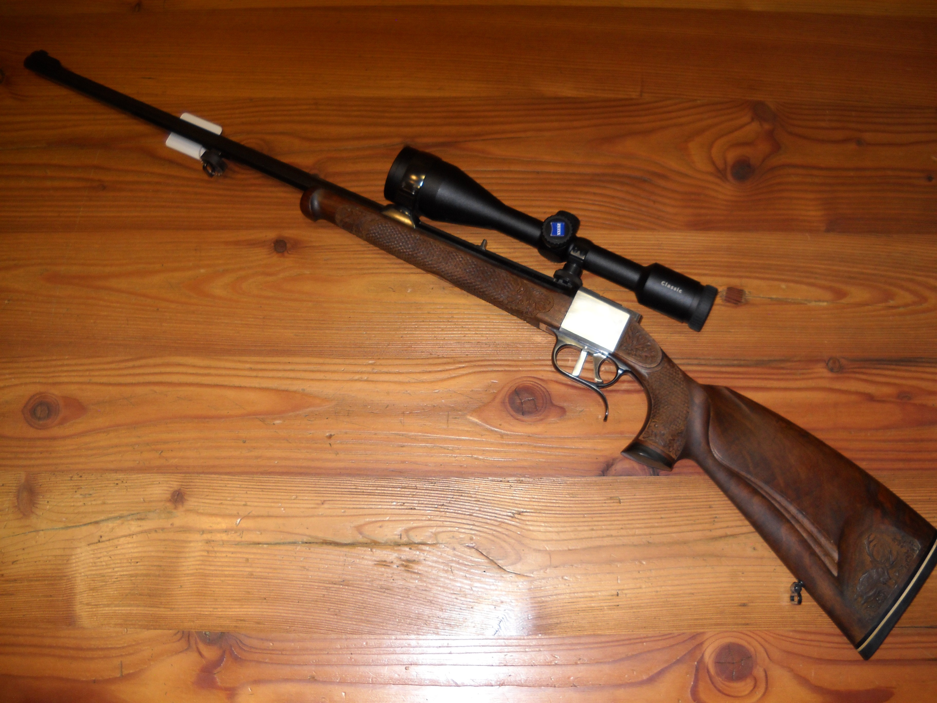Neuwertige Blockbüchse im Kal. 7x65R Handspannung Achtkantlauf Schaftverschneidung mit Schuppenfischhaut und ZF Zeiss Classic 7x50 Leuchtpunkt € 2.300,00 VERMITTLUNGSVERKAUF